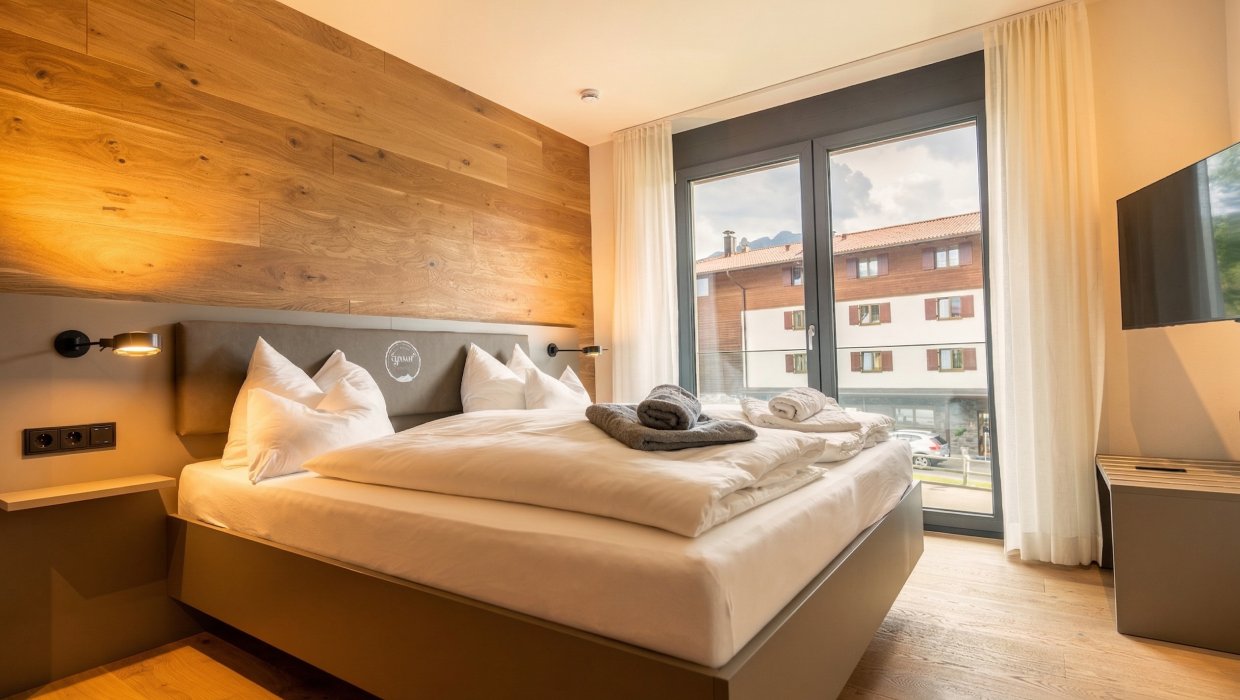 Ihr Apartment erwartet Sie mit alpenländischer Behaglichkeit und jedem erdenklichen Komfort. Durch raumhohe Glasfronten und großzügigem Sonnenbalkon sind Sie vom herrlichen Panorama der Allgäuer Hochalpen umgeben.