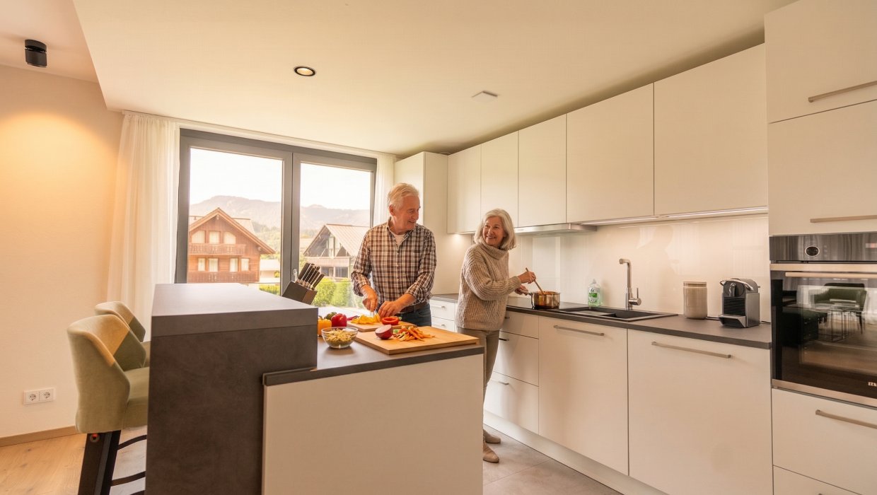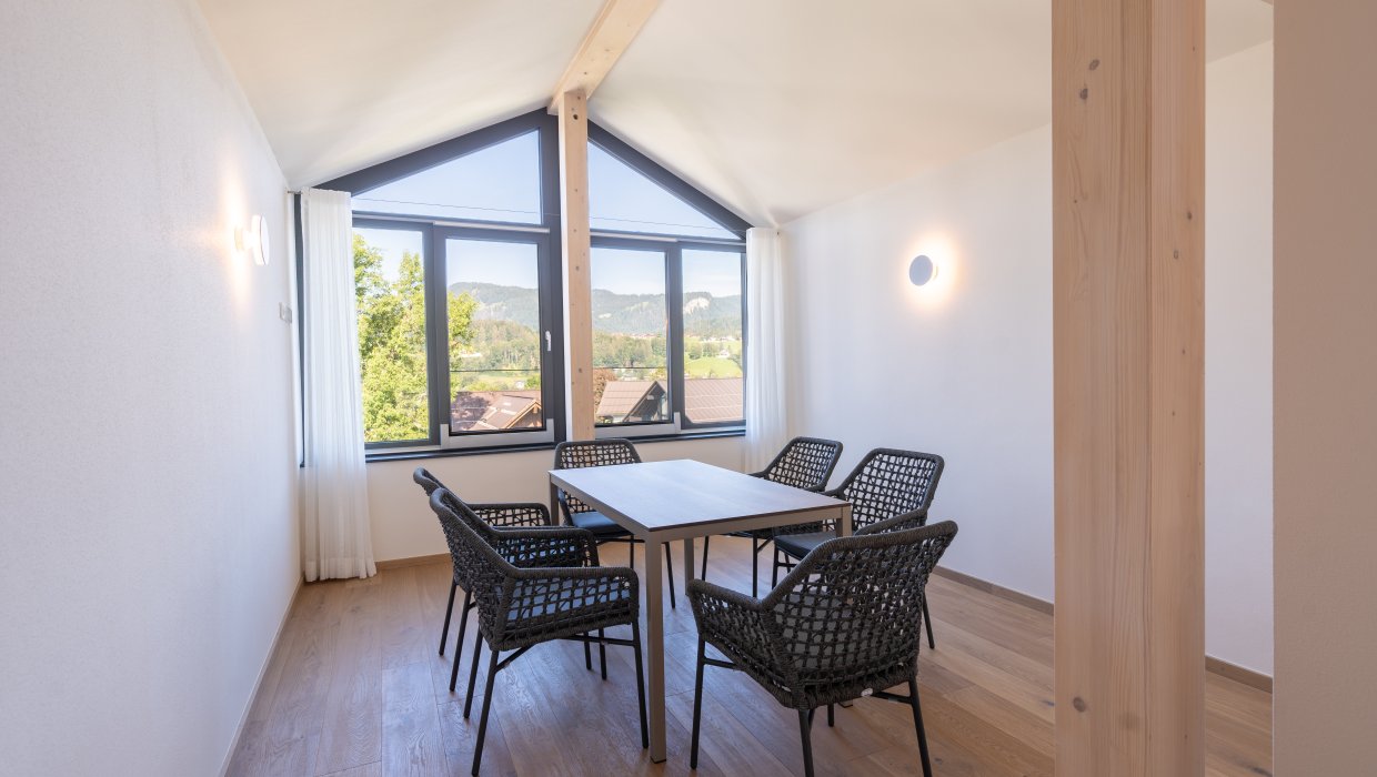 Ihr Apartment erwartet Sie mit alpenländischer Behaglichkeit und jedem erdenklichen Komfort. Durch raumhohe Glasfronten und großzügiger Terrasse sind Sie vom herrlichen Panorama der Allgäuer Hochalpen umgeben.