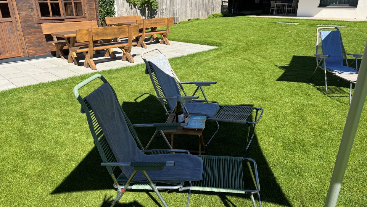 Es ist kein Balkon vorhanden. Sie dürfen gerne den großzügigen Garten mit Liegestühlen nutzen.