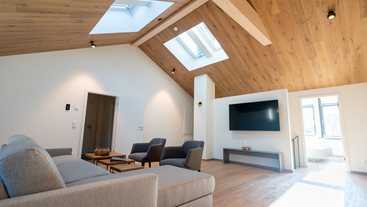 Genießen Sie Ihre Auszeit in unserer großzügigen Maisonette-Ferienwohnung Himmelblick auf 126 m² Wohnfläche im zweiten Obergeschoss – perfekt für Paare, Familien oder Freunde (1–6 Personen).