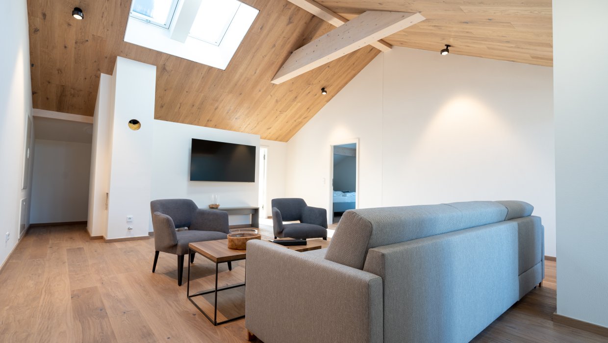 Inklusive sind: Bettwäsche, Handtücher, Geschirrtücher, Föhn, Spültücher sowie unser beliebtes Angebot Bergbahn Unlimited. Eine Tiefgarage und Parkplätze direkt am Haus runden das Angebot ab.“